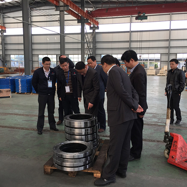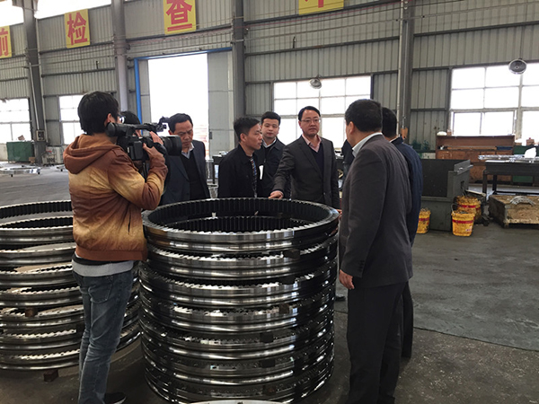楊善斌一行首先來到回轉(zhuǎn)驅(qū)動(dòng)車間,實(shí)地查看了回轉(zhuǎn)驅(qū)動(dòng)的裝配、蝸桿加工及噴粉設(shè)備,詳細(xì)了解了驅(qū)動(dòng)生產(chǎn)的各個(gè)環(huán)節(jié)、銷售情況等。隨后又參觀了回轉(zhuǎn)支承的生產(chǎn)車間、試驗(yàn)臺(tái)和產(chǎn)品檢驗(yàn)等,詳細(xì)了解企業(yè)生產(chǎn)經(jīng)營狀況、產(chǎn)品工藝流程和新建項(xiàng)目建設(shè)進(jìn)度,并要求當(dāng)涂縣隨行相關(guān)部門負(fù)責(zé)同志積極幫助企業(yè)解決實(shí)際問題。