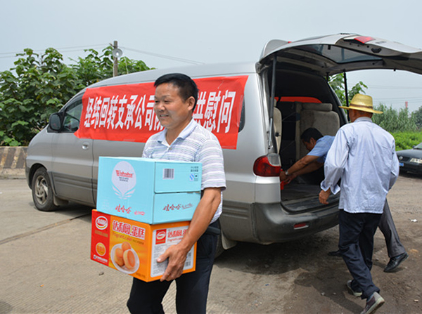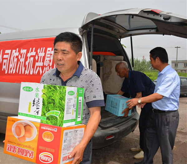 進入7月以來,我市當(dāng)涂境內(nèi)遭受連日強降雨侵襲,多地形成積水和內(nèi)澇,我公司也未能幸免,防汛抗洪形勢十分嚴(yán)峻。面對天災(zāi),我公司一方面積極組織內(nèi)部搶險自救,盡快恢復(fù)生產(chǎn),消化訂單;另一方面則心系日夜守衛(wèi)江河大堤的防汛抗洪人員,牽掛他們的衣食冷暖,并迅速采購了牛奶、方便面、蛋糕、綠茶、礦泉水和八寶粥等食品,準(zhǔn)備了慰問金,安排專人親自送到抗洪人員手中,給他們帶去了經(jīng)緯人的深情問候,也帶去了經(jīng)緯人的拳拳感激之心。
