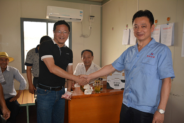 7月12日上午,我公司一行6人在印成家經(jīng)理帶領(lǐng)下,驅(qū)車趕往當(dāng)涂縣防汛抗洪一線,代表經(jīng)緯公司看望慰問在那里堅守大堤的黃山社區(qū)防汛抗洪人員,并送上食品和慰問金。
