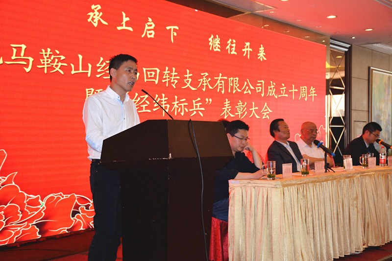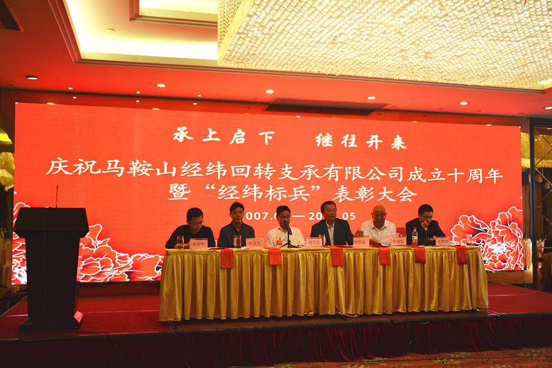 5月6日上午,暖風(fēng)拂面,陽光明媚。當(dāng)涂長(zhǎng)江國(guó)際酒店江南廳人頭攢動(dòng),燈火輝煌?;鸺t背景的超大液晶屏上,“慶祝馬鞍山經(jīng)緯回轉(zhuǎn)支承有限公司成立十周年曁‘經(jīng)緯標(biāo)兵’表彰大會(huì)”金黃大字耀眼奪目,能夠同時(shí)容納幾百名賓客的金色大廳內(nèi)座無虛席。經(jīng)緯公司總經(jīng)理?xiàng)钍篮?、副總?jīng)理姚然強(qiáng)、張玉元、王書君、中國(guó)科技大學(xué)先進(jìn)技術(shù)研究院程繼高教授以及安徽工業(yè)大學(xué)機(jī)械學(xué)院教授、宣城工業(yè)技術(shù)研究院院長(zhǎng)、宣城市科技局副局長(zhǎng)宋崇智先生分別在主席臺(tái)就坐,來自國(guó)內(nèi)的30多名特邀嘉賓以及經(jīng)緯公司200多名員工參加了慶祝表彰大會(huì)。