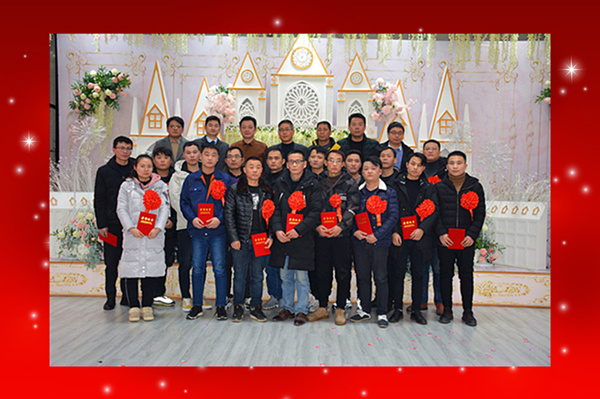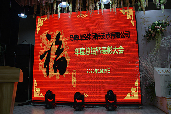1月19日下午,當(dāng)涂喜百年酒店8號(hào)大廳華燈璀璨,花團(tuán)錦簇,喜樂(lè)飛揚(yáng),舞臺(tái)兩側(cè)大屏幕上,大紅色映襯的“馬鞍山經(jīng)緯回轉(zhuǎn)支承有限公司年度總結(jié)曁表彰大會(huì)”主題標(biāo)語(yǔ)鮮艷奪目,像是張開(kāi)雙臂歡迎“經(jīng)緯”家人的到來(lái);舞臺(tái)下方,17位胸佩大紅花的獲獎(jiǎng)人員在最前排圓桌前就座,他們各個(gè)笑意盎然,充滿自豪;近300名員工則分坐大廳中央和兩側(cè),寒暄互致,情義融融。3點(diǎn)18分,隨著開(kāi)場(chǎng)視頻激情登場(chǎng),經(jīng)緯公司2019年度總結(jié)曁表彰大會(huì)在歡快而熱烈的氣氛中隆重拉開(kāi)帷幕。