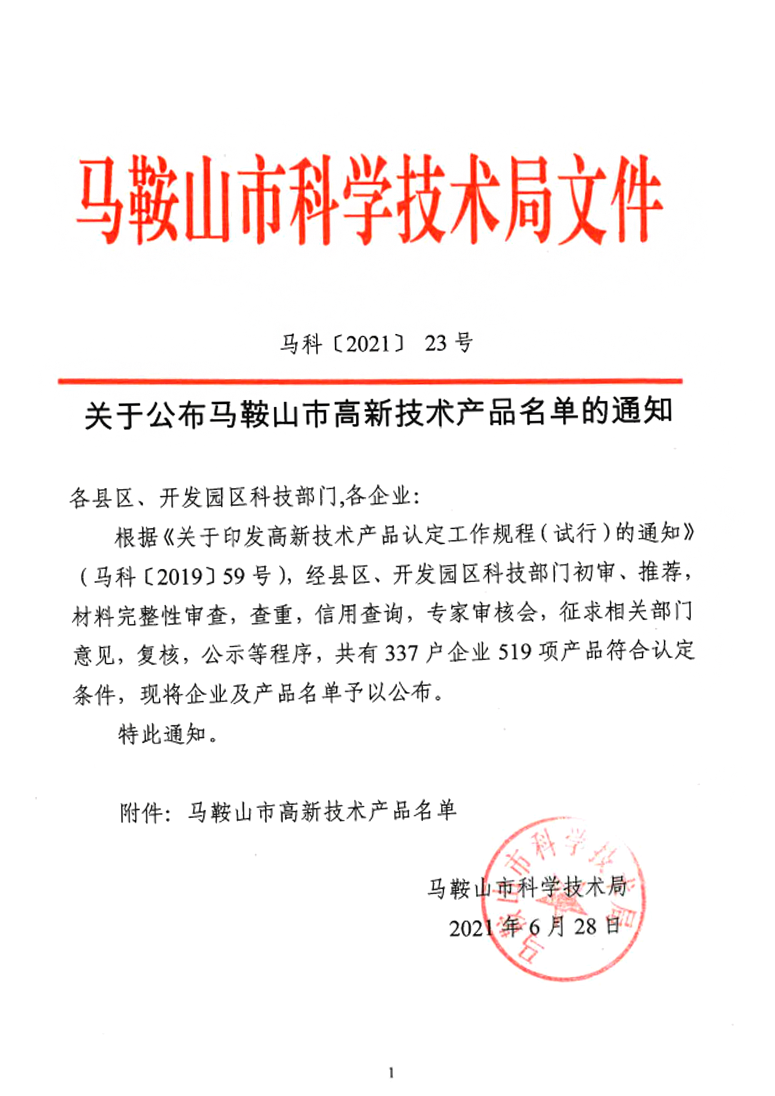 喜訊:經(jīng)緯兩項產(chǎn)品被認(rèn)定為“馬鞍山市高新技術(shù)產(chǎn)品”