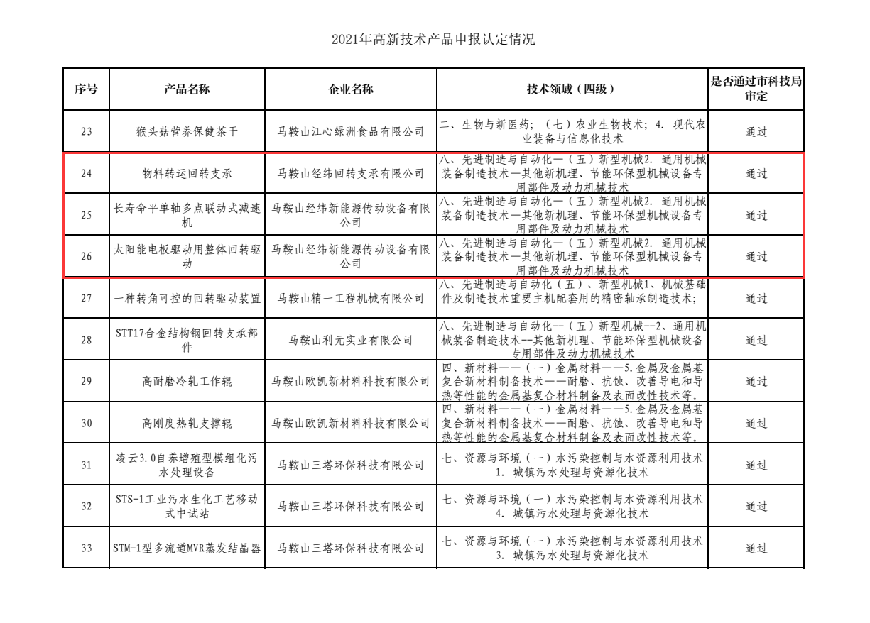 日前,經(jīng)緯公司三項產(chǎn)品通過2021年度馬鞍山市高新技術(shù)產(chǎn)品認定。它們分別是:經(jīng)緯回轉(zhuǎn)支承的“物料轉(zhuǎn)運回轉(zhuǎn)支承”,經(jīng)緯新能源的“長壽命平單軸多點聯(lián)動式減速機”和“太陽能電板驅(qū)動用整體回轉(zhuǎn)驅(qū)動”,均具有較高的科技含量和廣泛的市場價值。尤其值得一提的是由經(jīng)緯研發(fā)人員自主設計開發(fā)的“長壽命平單軸多點聯(lián)動式減速機”和“太陽能電板驅(qū)動用整體回轉(zhuǎn)驅(qū)動”兩項高新產(chǎn)品,在控制應用成本、提高工作效率、減小空間占用和延長使用壽命等諸多方面具有獨到優(yōu)勢,代表了目前光伏回轉(zhuǎn)減速機最新制造技術(shù)和行業(yè)應用潮流。