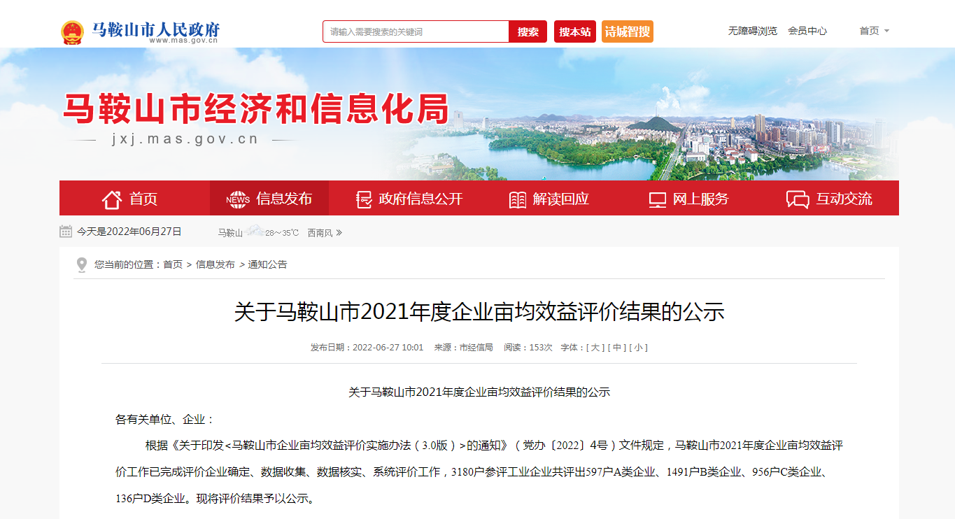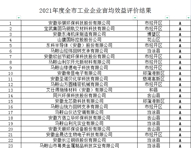 2021年度全市工業(yè)企業(yè)畝均效益評價:經(jīng)緯排名全市第六、蟬聯(lián)當(dāng)涂第一