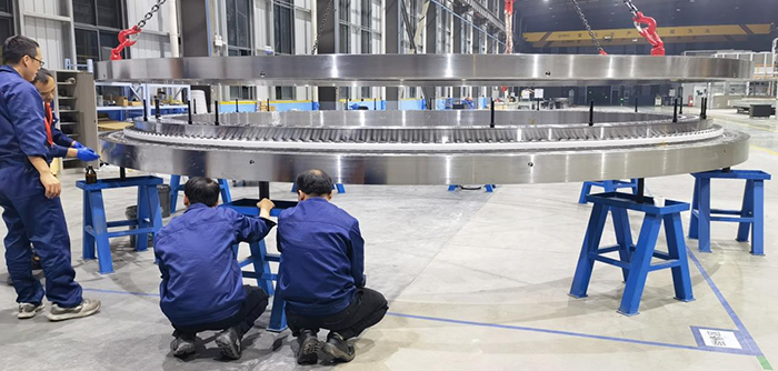 圖為裝配人員正在對6米風電軸承進行最后的組裝