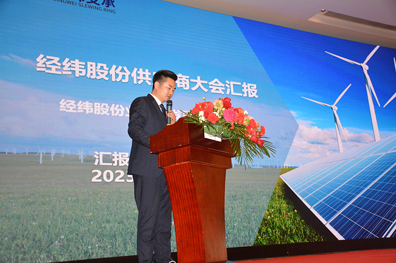 大會(huì)綠意涌動(dòng)。在熱烈鼎沸的氣氛中,經(jīng)緯股份公司董事長(zhǎng)、總經(jīng)理?xiàng)钍篮隄M懷激情與期盼,作了題為《同啟新征程,智繪新未來》的主題報(bào)告。他首先深情回顧了供應(yīng)商伙伴與經(jīng)緯多年來同甘共苦所走過的風(fēng)雨歲月,用“吃水不忘挖井人”的樸素情懷,對(duì)曾在經(jīng)緯弱小和困難時(shí)期不離不棄、相向而行、傾力相助的供應(yīng)商朋友表示衷心感謝和誠(chéng)摯敬意,并表示在今后合作中給予優(yōu)先待遇。報(bào)告中,楊世宏董事長(zhǎng)緊緊圍繞新發(fā)展理念,緊貼創(chuàng)新、綠色主基調(diào),深入分析闡述了綠色轉(zhuǎn)型和數(shù)字化發(fā)展的時(shí)代性和長(zhǎng)遠(yuǎn)性,傳遞了堅(jiān)定走綠色發(fā)展之路和高科技打造綠色經(jīng)緯的信心和決心。此外,著重分享了2022年經(jīng)緯光伏、風(fēng)電兩大綠色板塊在經(jīng)濟(jì)增長(zhǎng)、人才引進(jìn)、技術(shù)創(chuàng)新、技術(shù)改造等重要方面所取得的優(yōu)良業(yè)績(jī)和心得;詳細(xì)解讀了經(jīng)緯“做精回轉(zhuǎn)支承,做大回轉(zhuǎn)驅(qū)動(dòng),做強(qiáng)風(fēng)電軸承,籌劃拓展JG市場(chǎng)”四大產(chǎn)業(yè)之未來發(fā)展規(guī)劃及增長(zhǎng)目標(biāo);深刻展望了在“緊貼市場(chǎng),雙贏發(fā)展”共識(shí)基礎(chǔ)上,共建質(zhì)量上乘、價(jià)格合理、供貨及時(shí)、相互信任、保障有力的強(qiáng)大供應(yīng)鏈生態(tài)的合作期待,同時(shí)還熱切表達(dá)了經(jīng)緯綠色產(chǎn)業(yè)爭(zhēng)做細(xì)分行業(yè)龍頭的宏偉愿望。報(bào)告字真句誠(chéng),綠意盎然,充滿希望,催人奮進(jìn),全場(chǎng)多次響起熱烈掌聲,來賓們倍受感染和鼓舞,真切感受到滿滿綠意正涌動(dòng)匯聚成綠色發(fā)展浪潮,如滔滔江水奔涌而來,勢(shì)不可擋。