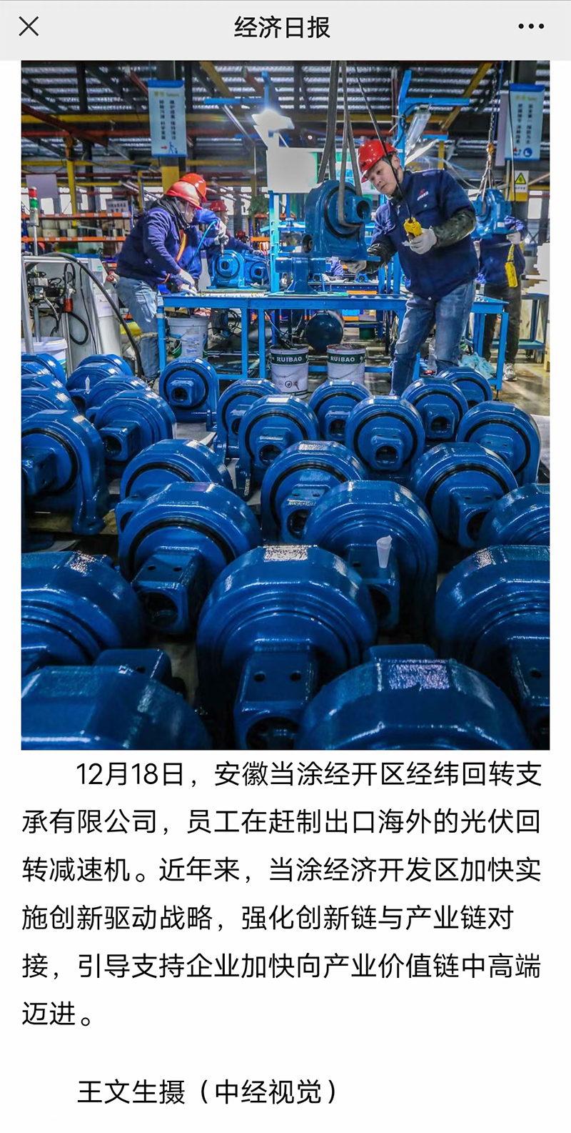 近日,經(jīng)緯光伏減速機(jī)海外出口消息沖上多家主流媒體版面,《安徽日?qǐng)?bào)》、“中經(jīng)視覺”以及新華網(wǎng)客戶端都相繼以圖文并茂形式及時(shí)進(jìn)行了報(bào)道或轉(zhuǎn)載。這是此前經(jīng)緯公眾號(hào)發(fā)布《飄揚(yáng)過海去歐美》一文報(bào)道了經(jīng)緯光伏回轉(zhuǎn)減速機(jī)大批量銷往歐美之后引發(fā)的媒體連鎖效應(yīng),此文在受到主流媒體關(guān)注的同時(shí),也吸引了主流媒體記者主動(dòng)相約展開采訪報(bào)道。