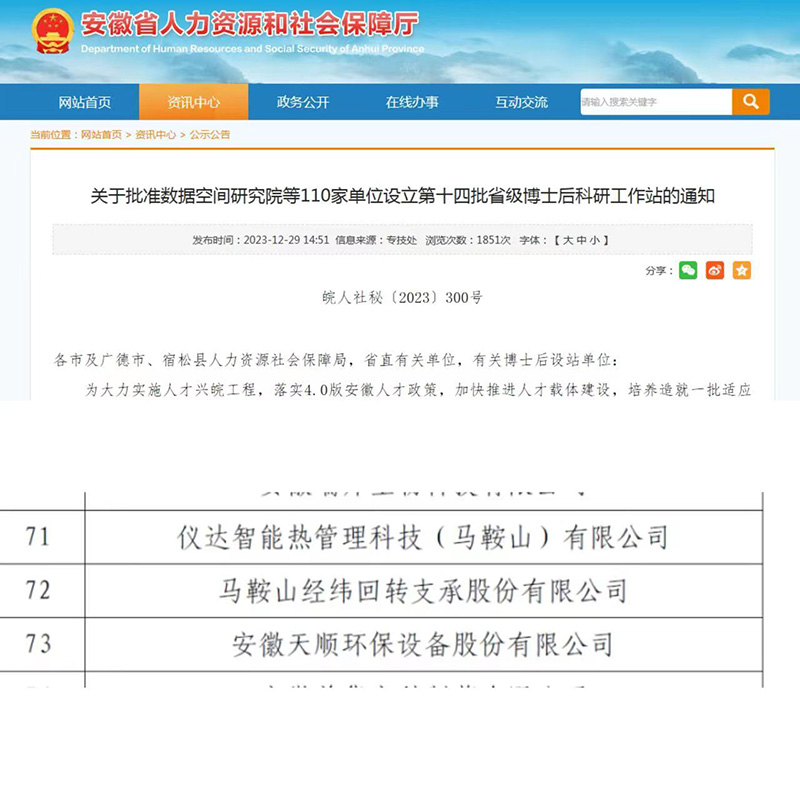 日前,安徽省人力資源和社會(huì)保障廳批準(zhǔn)了110家單位設(shè)立第十四批省級(jí)博士后科研工作站,經(jīng)緯公司名列其中。