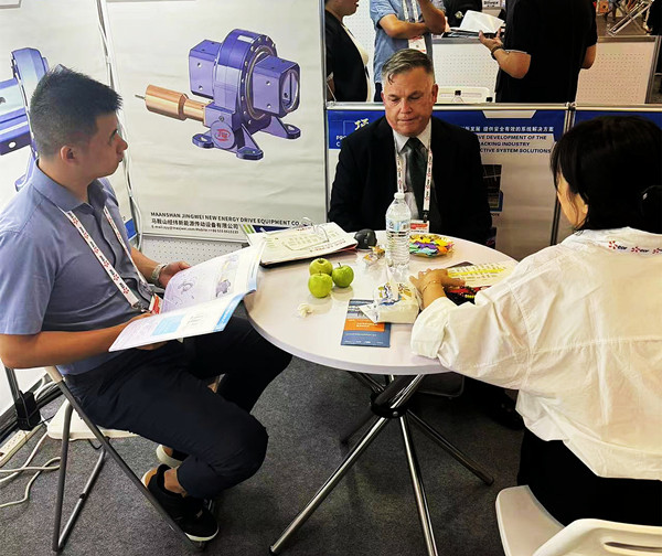 日前,在加尼福利亞舉辦的2024美國國際太陽能及儲能展覽會上,經(jīng)緯新能源傳動設(shè)備有限公司(以下稱經(jīng)緯新能源)展出的多款回轉(zhuǎn)減速機受到廣泛青睞,引發(fā)眾多海外觀展客商接踵而至,紛紛表達合作意向。