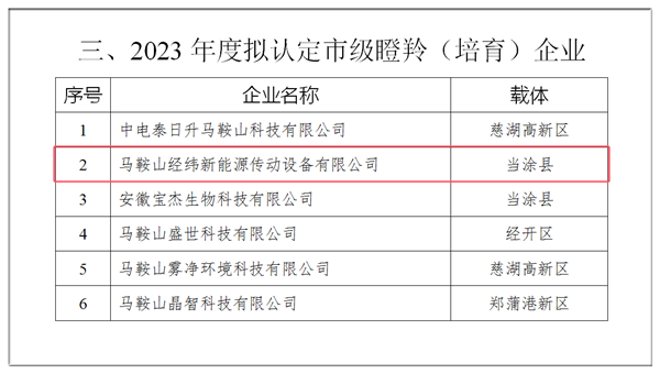 日前,馬鞍山市科技局會(huì)同市發(fā)改委、市經(jīng)信局、市財(cái)政局、市稅務(wù)局等部門開展了2023年度科技型企業(yè)認(rèn)定工作,擬認(rèn)定經(jīng)緯新能源為2023年度市級(jí)“瞪羚(培育)企業(yè)”。