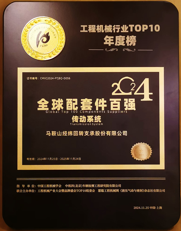 “向新求質(zhì)”結(jié)碩果!經(jīng)緯榮獲2024工程機械行業(yè)TOP10年度榜全球配套件(傳動系統(tǒng))十強大獎